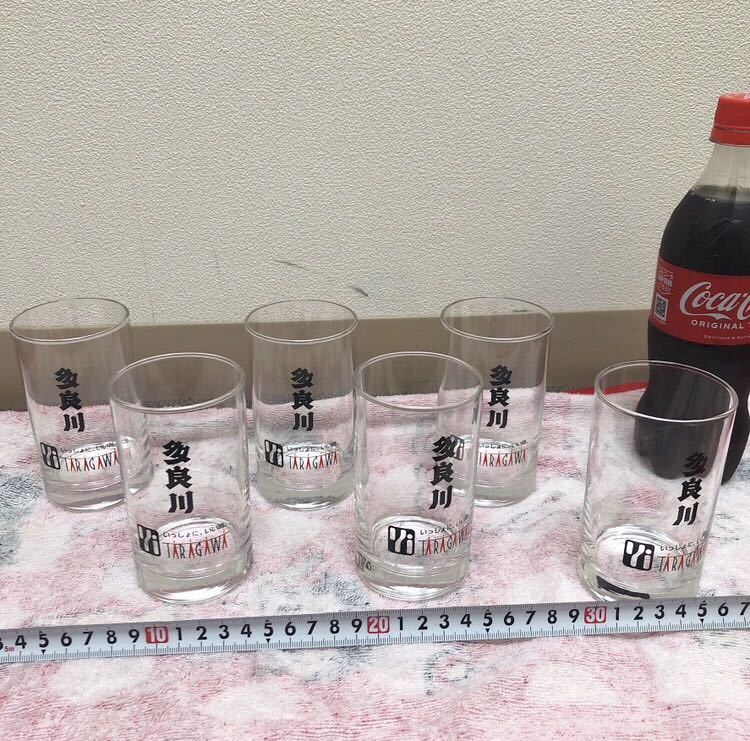 > YK-1618 #50 中古美品 箱無し 多良川 たらがわ TARAGAWA 黒 ロゴ グラス 6個入り 容量250ml 高さ11cm 沖縄 泡盛 オリオンビールORION BEER
