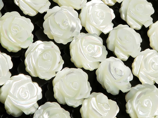 - マザーオブパール ホワイト 薔薇彫刻 10mm【1連販売】 / 9-112 SH10RS