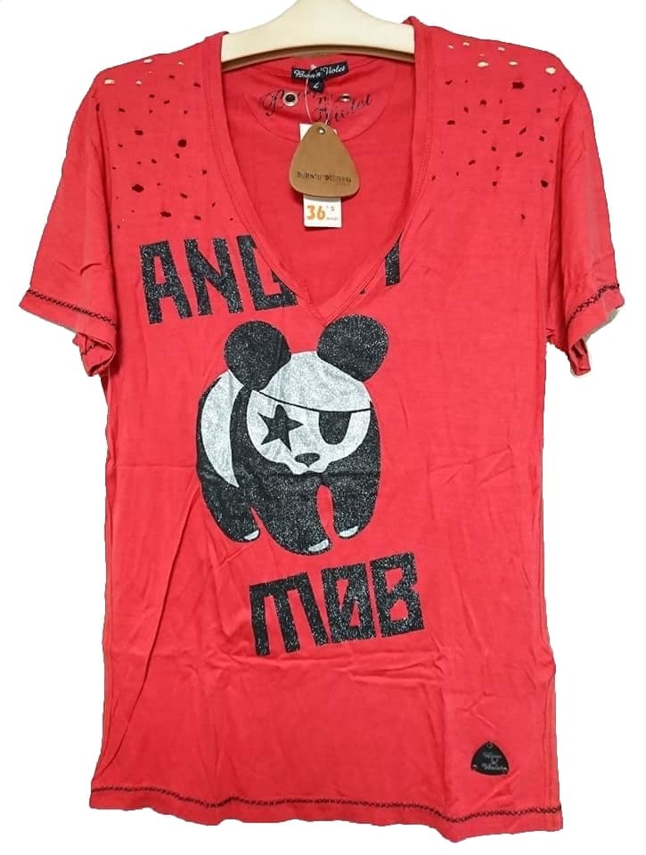 > 激安オクスタ!新品タグ付!ロンドン発バーンバイオレット/BURN'N'VIOLET/ヴィンテージクラッシュ加工パンダTシャツ 2 赤レッド/グランジ