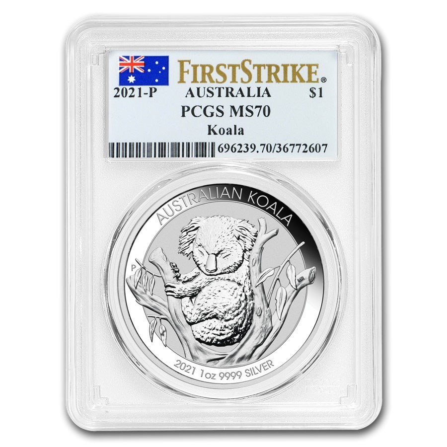 > [保証書・スラブ付き] 2021年 (新品) オーストラリア「コアラ」純銀 1オンス 銀貨 PCGS MS70 (ファーストストライク)