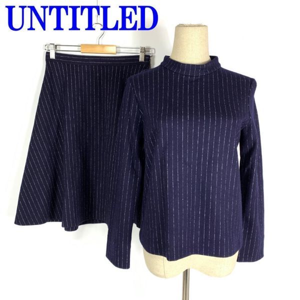 > アンタイトル セットアップ スカート ウール ストライプ 紺 UNTITLED カットソー フレアスカート ひざ丈 ネイビー 2 C7150
