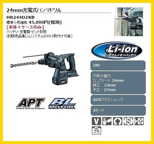 > マキタ 24mm 18V 充電式ハンマドリル HR244DZKB (黒) [本体+ケース] ■安心のマキタ純正/新品/未使用■