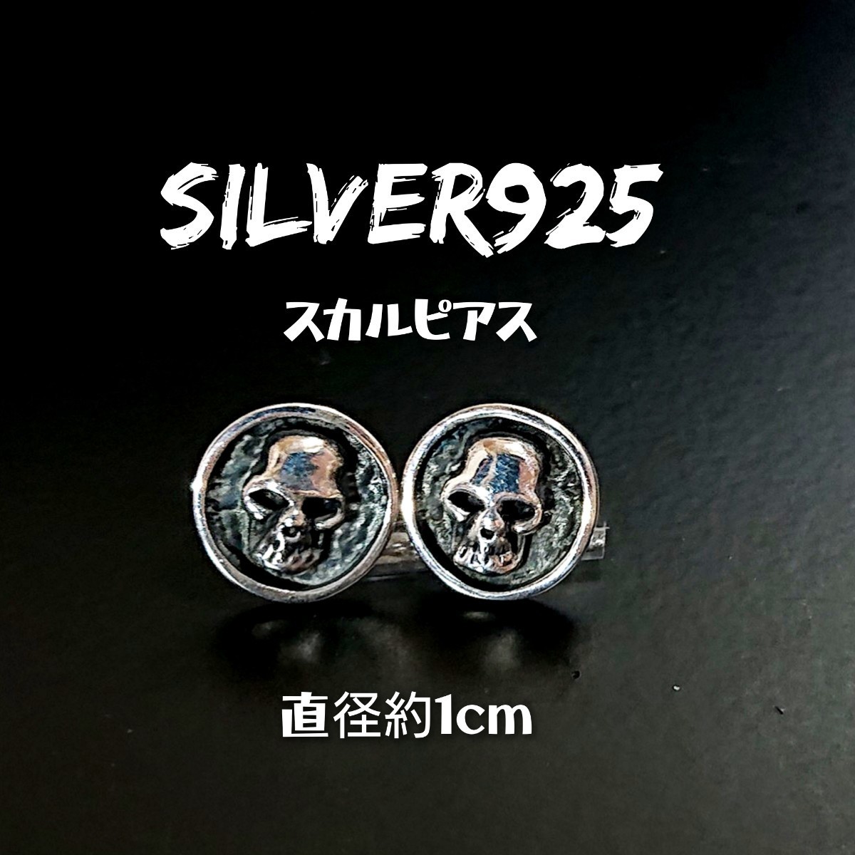 > 1057 SILVER925 スカル ラウンドピアス シルバー925 ドクロ ガイコツ 頭骸骨 丸型 小 ユニセックス ゴシック 円形 顔 燻し ユニセックス
