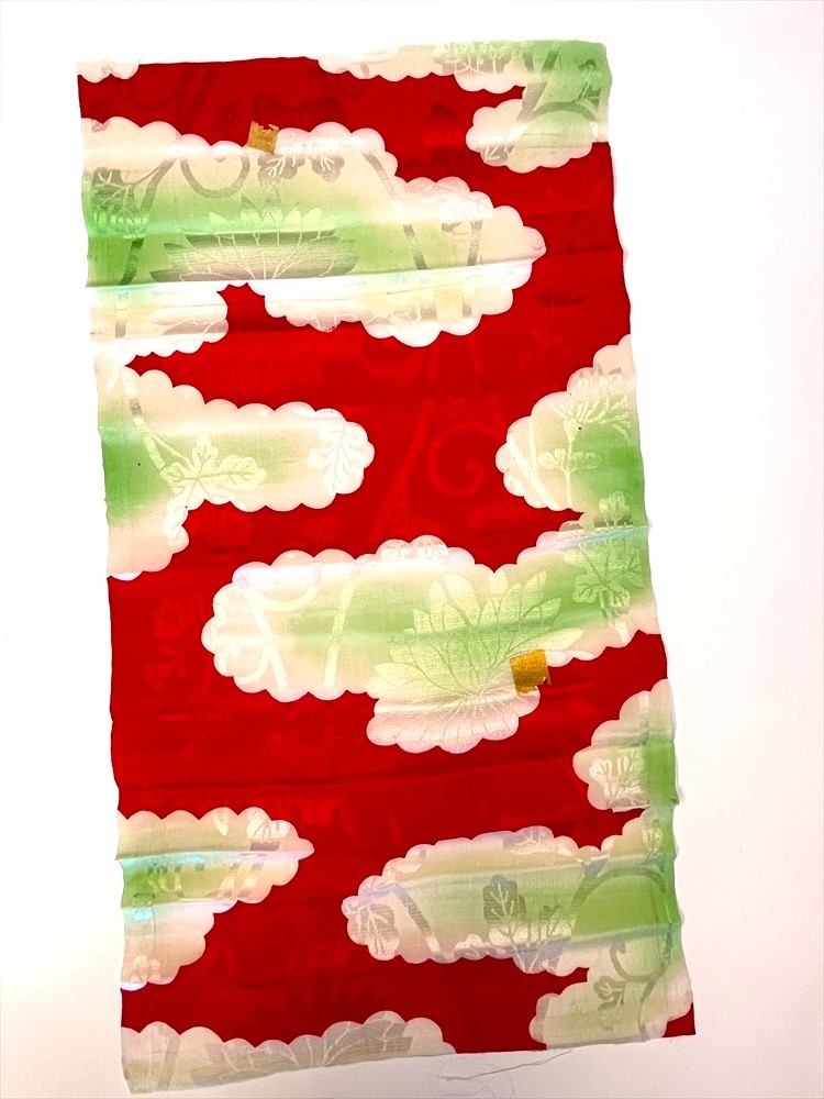 - 花とら●リサイクル端切れ リメイク 素 赤 雲取り 菊地紋 素材 細工用 231005-02