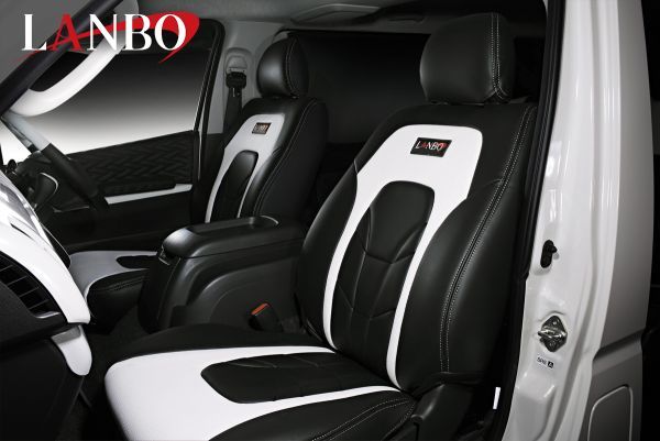 - LANBO 200系 ハイエース S-GL レザーシートカバー Type VOID ブラックレザー×ホワイトパンチング VOID-0219-WH