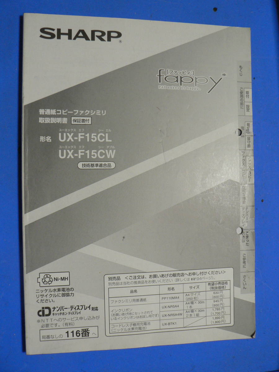 - 送料最安 230円 B5版93:SHARP UX-F15CL/UX-F15CW シャープ 普通紙コピーファクシミリ 取扱説明書