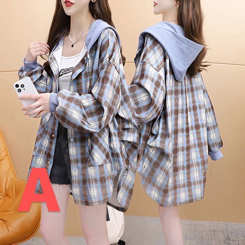 - チェックパーカー フード付き レディース 春 秋 トップス スウェット 長袖 前あき 大きいサイズ フード パーカー 羽織 LCEA031(2色M-2XL)