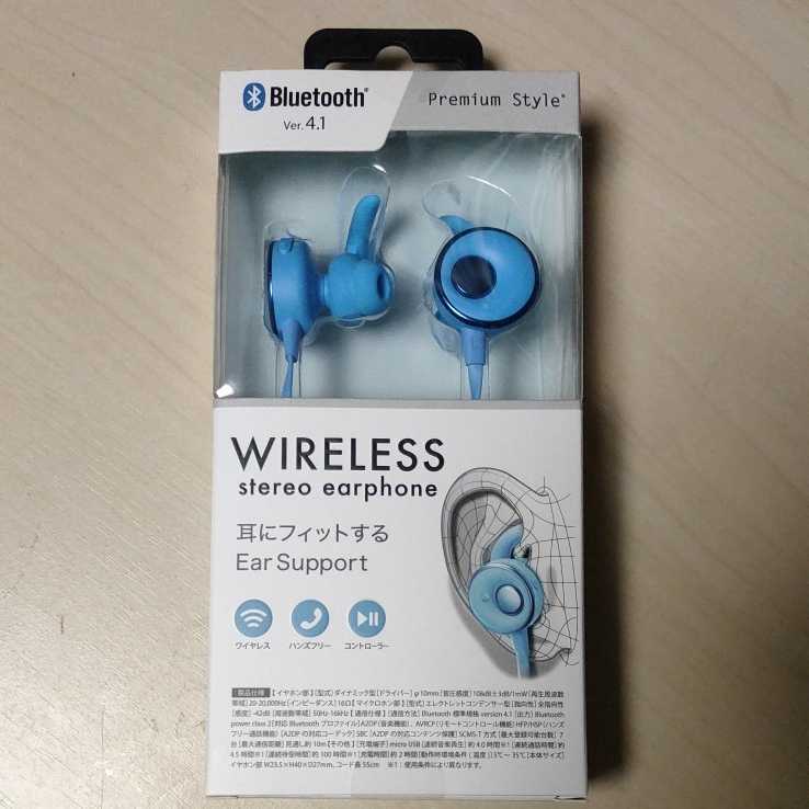 > ★PGA Bluetooth 4.1搭載 ワイヤレス ステレオ イヤホン イヤーサポート付き PG-BTE2S03 ブルー