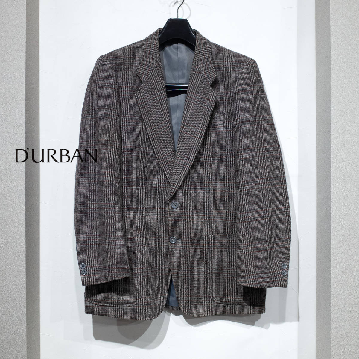 > A7 / 80's 90’s DURBAN ダーバン ウール 2ボタン テーラードジャケット パッチポケット トラッド クラシック グレンチェック グレー系