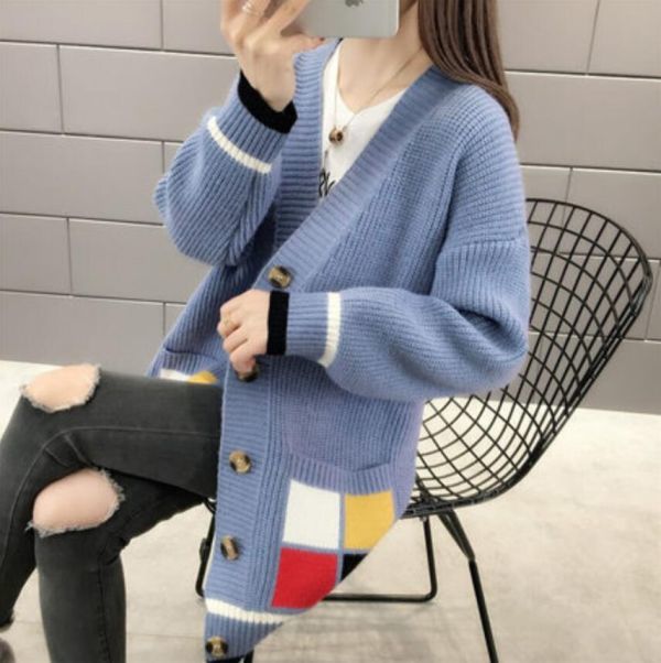 - 新入荷/秋冬 大人気 ゆったり 可愛い ストレッチ 暖かい きれいめ 長袖 ニットセーターカーディガン /ブルー