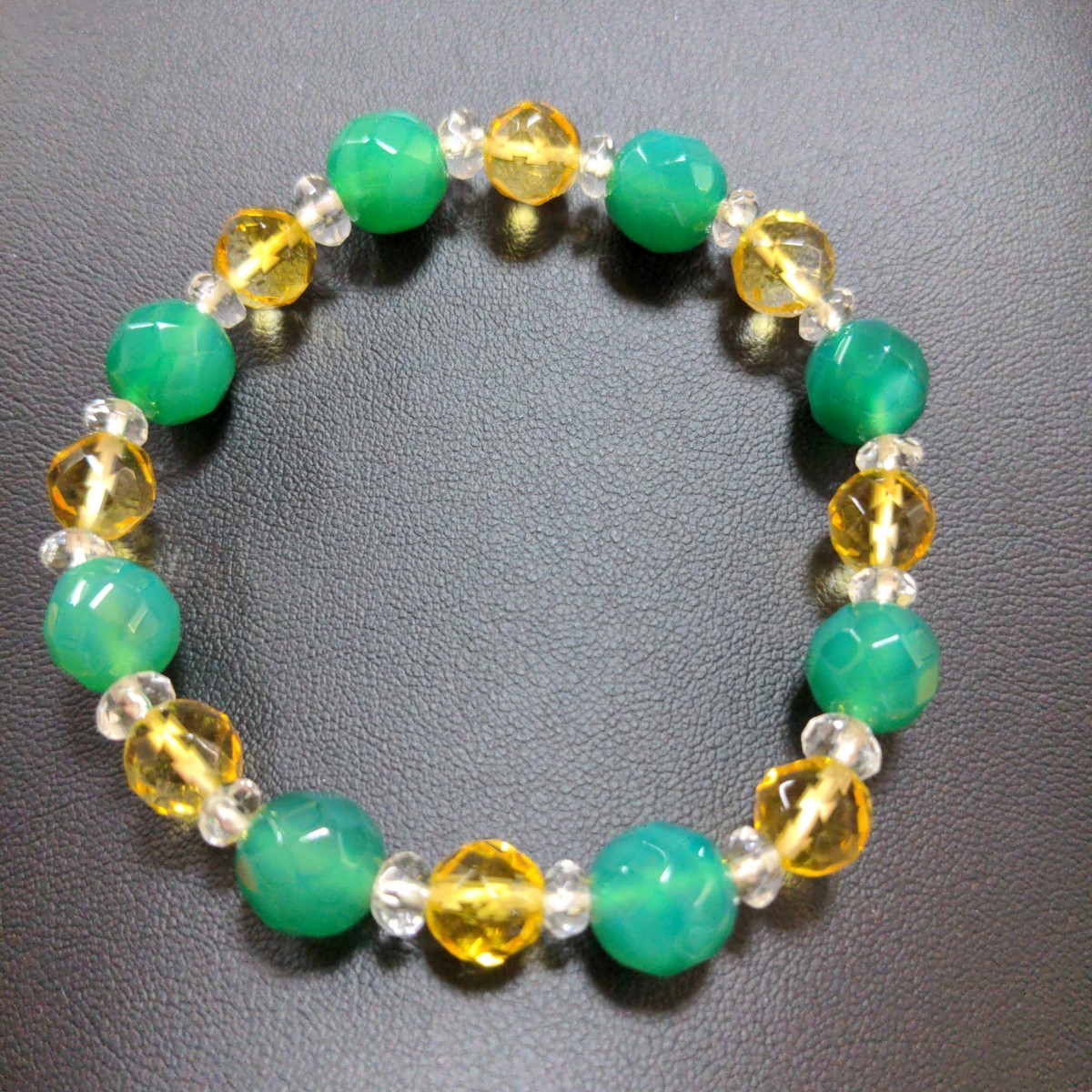 - ブレスレット 天然石かどうかは不明 外周約22cm 外径約6.8cm 内径約5.3cm 美しい輝き グリーン イエロー クリア ブレス