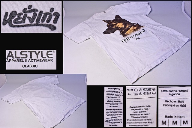 > ヤンガオ ★ YANGGAO ★ Tシャツ ★ 犬 ( シェパード ? ) ★ Mサイズ ★ 白 ★ 綿100% ★ 前面下部に シミ 数カ所あります ★ 中古品 ★