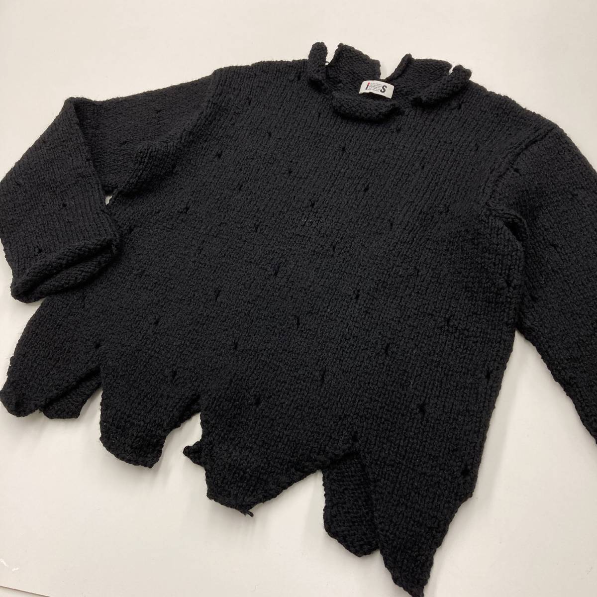 > 激レア IS ISSEY MIYAKE スカラップ 穴あき 変形 ローゲージ ニット セーター ブラック 黒 Mサイズ イッセイミヤケ archive 1509