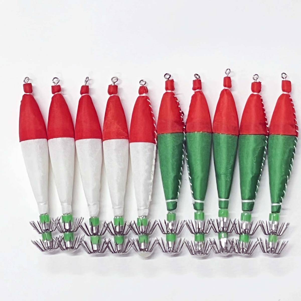 - イカ釣り 浮きスッテ 3号 10本 人気色 赤白 赤緑 エギング アオリイカなど 仕掛け 訳有未使用品 wkst3hRWRG10bm-1