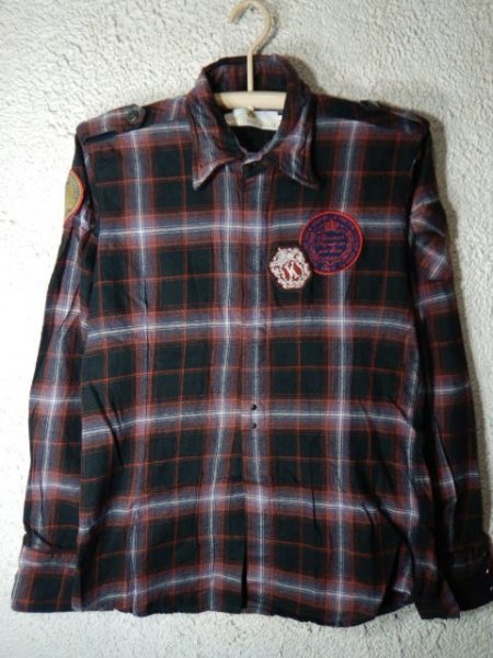 - to7156 VANQUISH GOLD ヴァンキッシュ ゴールド 長袖 チェック ワッペン デザイン シャツ ネルシャツ 人気