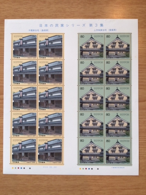 > 日本の民家シリーズ第3集 島根県・木幡家 宮城県・上芳我家 1シート(20面) 切手 未使用 1998年