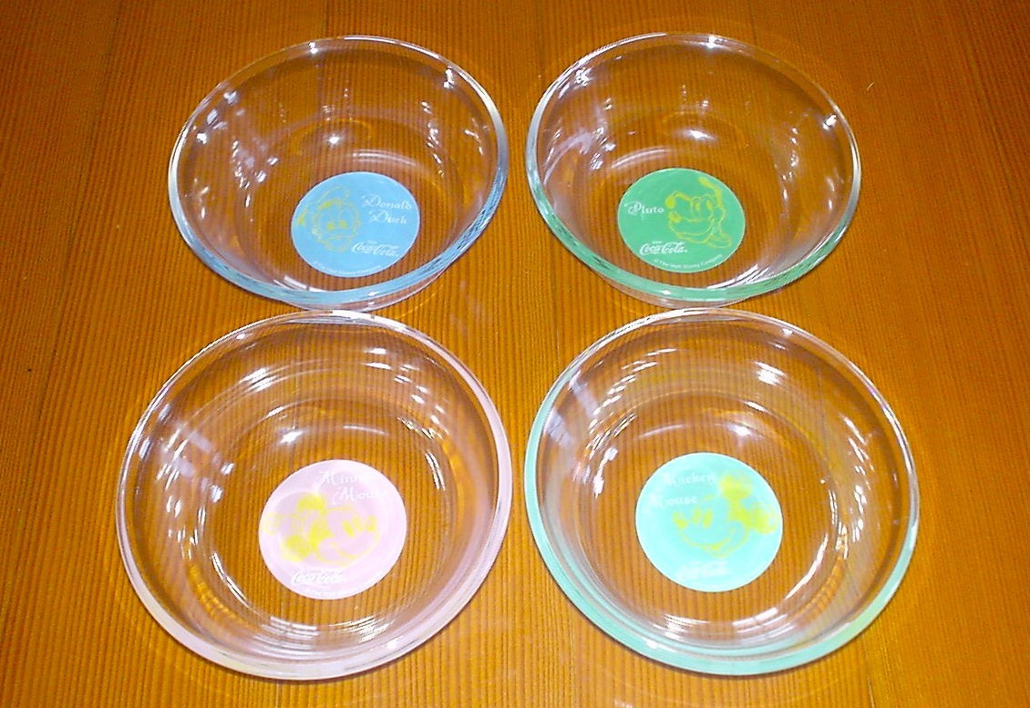 - 新品 ディズニー キャラクター サマーボウル 4枚セット コカ・コーラ 4色ガラス製