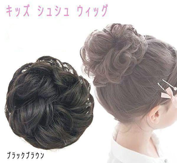 - 【新品1個】 子供 シュシュ ウィッグ キッズ お団子 エクステ カール つけ毛 送料無料 女の子