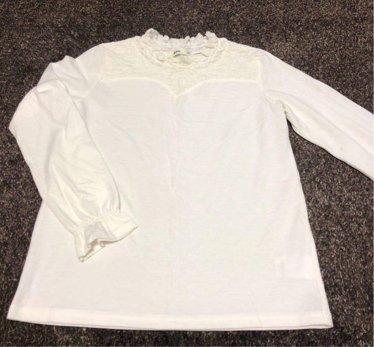- 4回着用 ライトオン ハイネックレース風トップス 140ホワイト ガーリー系 白