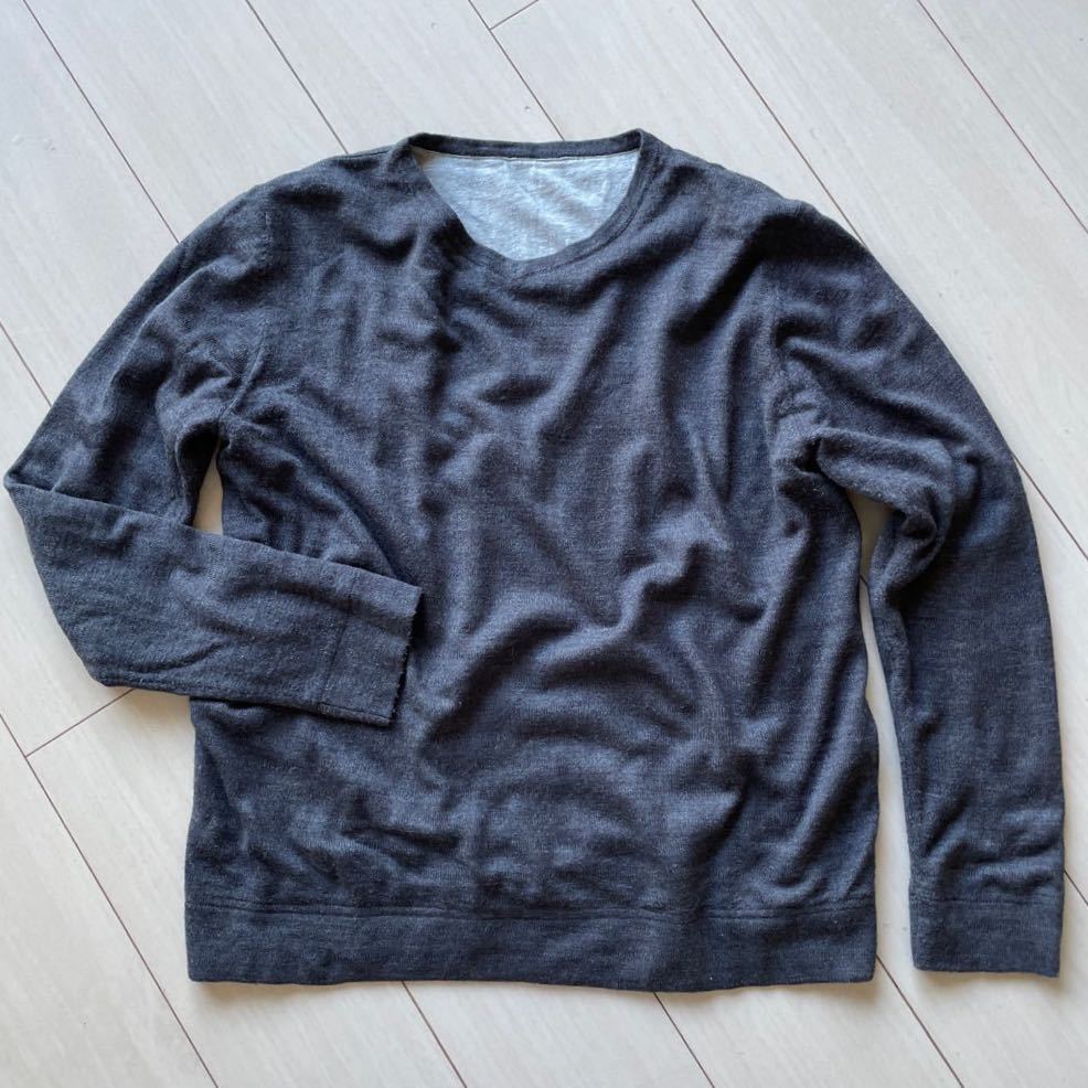 > ニット 長袖 Vネック 裏地Tシャツ グレー Lサイズ おしゃれ メンズ カットソー 人気 ブランド 好感度デート コーデ 清潔感 カジュアル