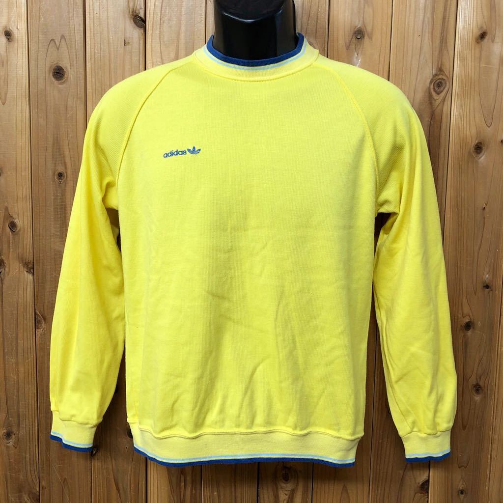 - 70-80's /adidas /アディダス メンズS 長袖 リブ トップス ロゴ刺繍 イエロー スポーツ カジュアル ビンテージ古着