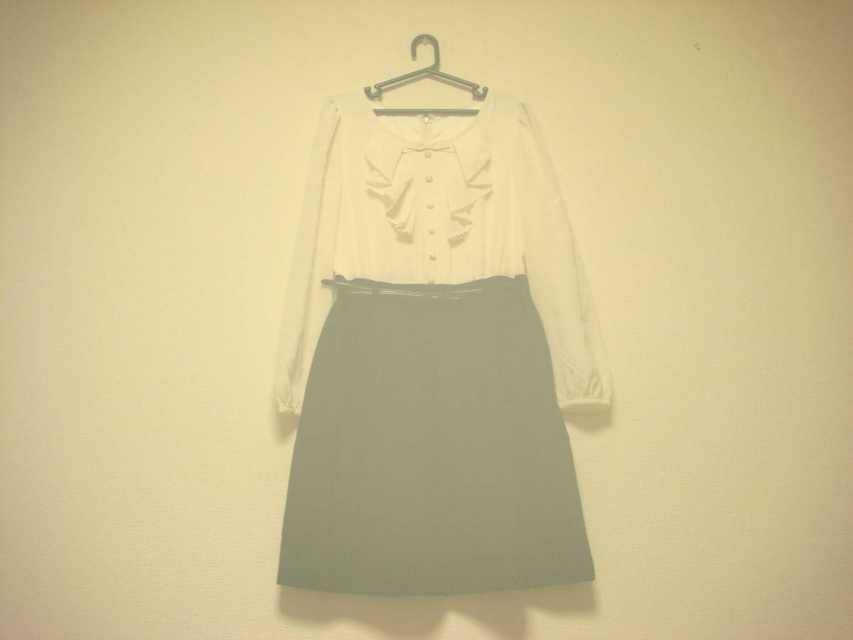 - レッセパッセ デビュードフィオレ バイカラー フリル リボン付き 切り替えワンピース 白黒 ベルトなし 美品 36