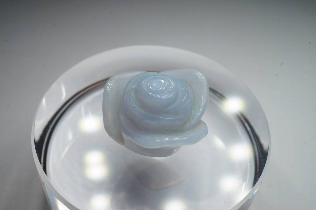 - 希少30年前の原石を加工彫刻!極上天然ブルーレースアゲート(別名:青縞瑪瑙)「花」彫刻研磨高透明度7.3ct