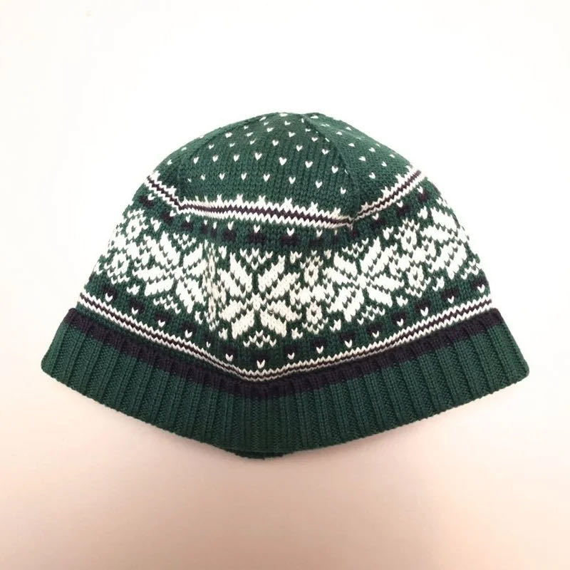 - 新品タグ付き ベビー&キッズ 頭囲44cm【JANIE&JACK ジャニーアンドジャック】グリーン フェアアイル柄 ニット帽 コットンニットキャップ