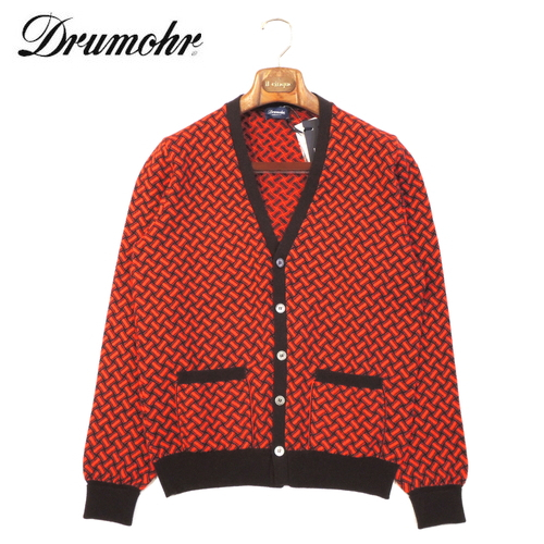 - 【40%OFF・新品・48】Drumohr(ドルモア)ビスコッティ柄 カシミヤニットカーディガン ブラウン×レッド D2K110