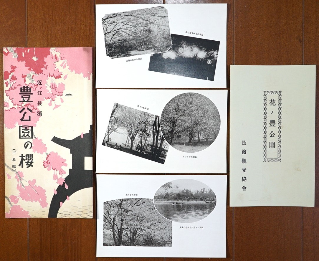 - 近江豊公園の櫻 絵葉書3枚 紙ケース付き + 花ノ豊公園案内パンフレット1枚 長濱観光協会発行 検:滋賀県長浜市観光案内 豊臣秀吉 長浜城跡