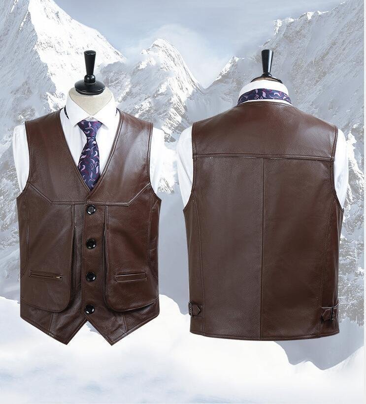 - ベスト ライダーズベスト 新品/メンズ レザーベスト 本革 チョッキ フォーマル ジレベスト ビジネスベスト 前開き ブラウン 3XL