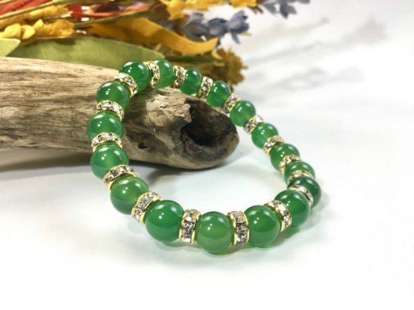 > 緑瑪瑙 パワーストーン ブレスレット 天然石ブレス 10mm メンズ・レディース (ロンデル:ゴールド) 開運 浄化 数珠ブレス
