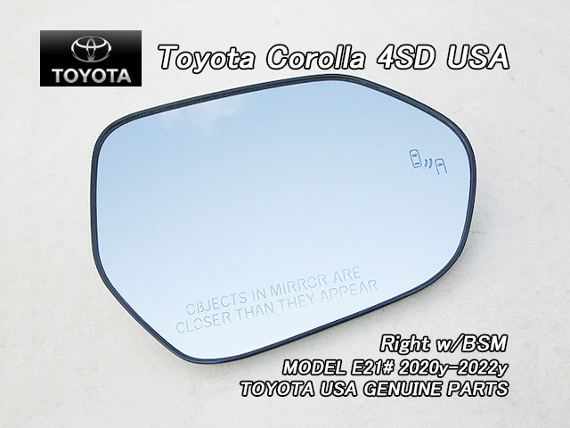 > カローラE21#/TOYOTA/トヨタCOROLLAセダン純正USドアミラーガラス右側(BSM付)/USDM北米仕様E210系4ドア英文字入りミラーレンズ右USA鏡面