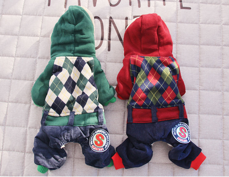 - 犬の服 オールインワン ドッグ服 着ぐるみ つなぎ ペット用品 フード 秋冬 柔らかい 暖かい 四足前開き 犬猫 秋冬物 防寒 お散歩お出かけ服