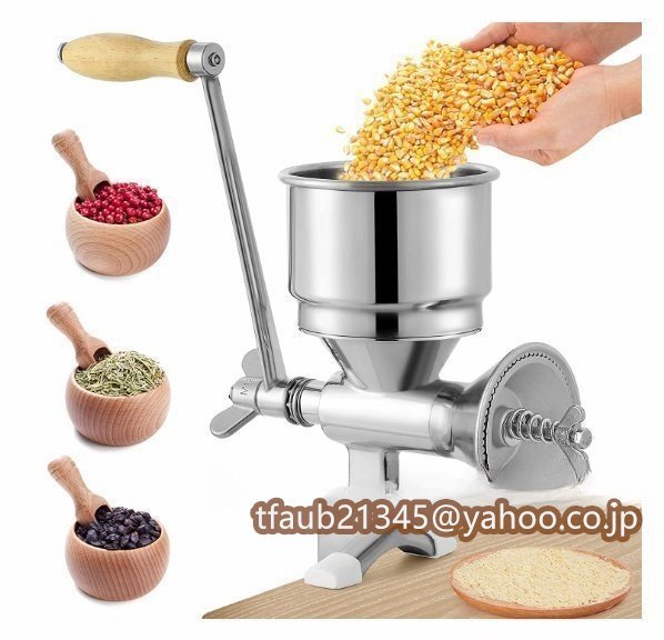 > 手挽き穀物製粉機 手動 家庭用 DIY 小型 トウモロコシ、ごま、米、キビ、コショウ、粗塩などの調味料用 卓上型 304#ステンレス製