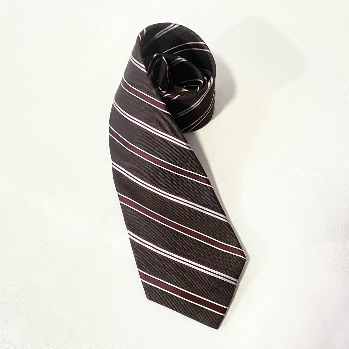 - GEORGES FRANK FAIRFAX ストライプ ブラウン ネクタイ シルク100% 日本製