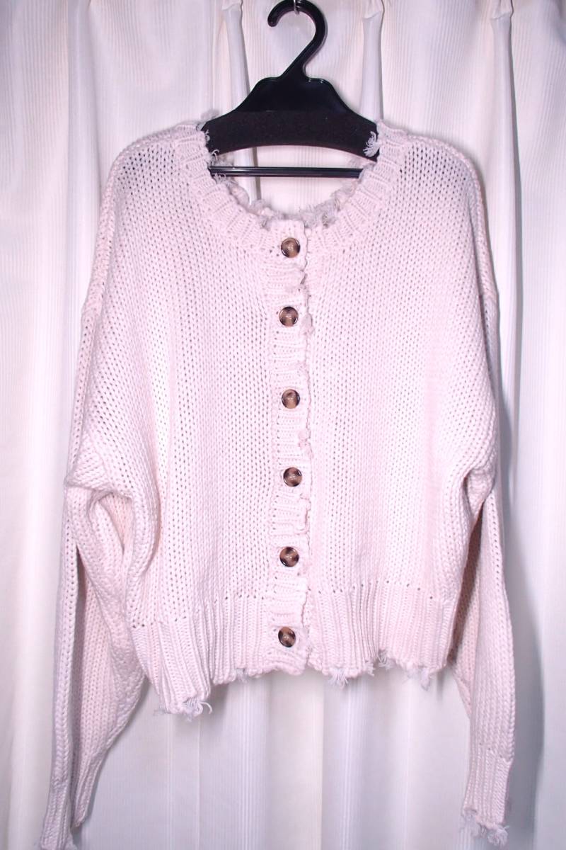 - ★2WAYニットカーディガン丸首セーター ざっくりニット Fサイズ オフ白 生成り Shelly island