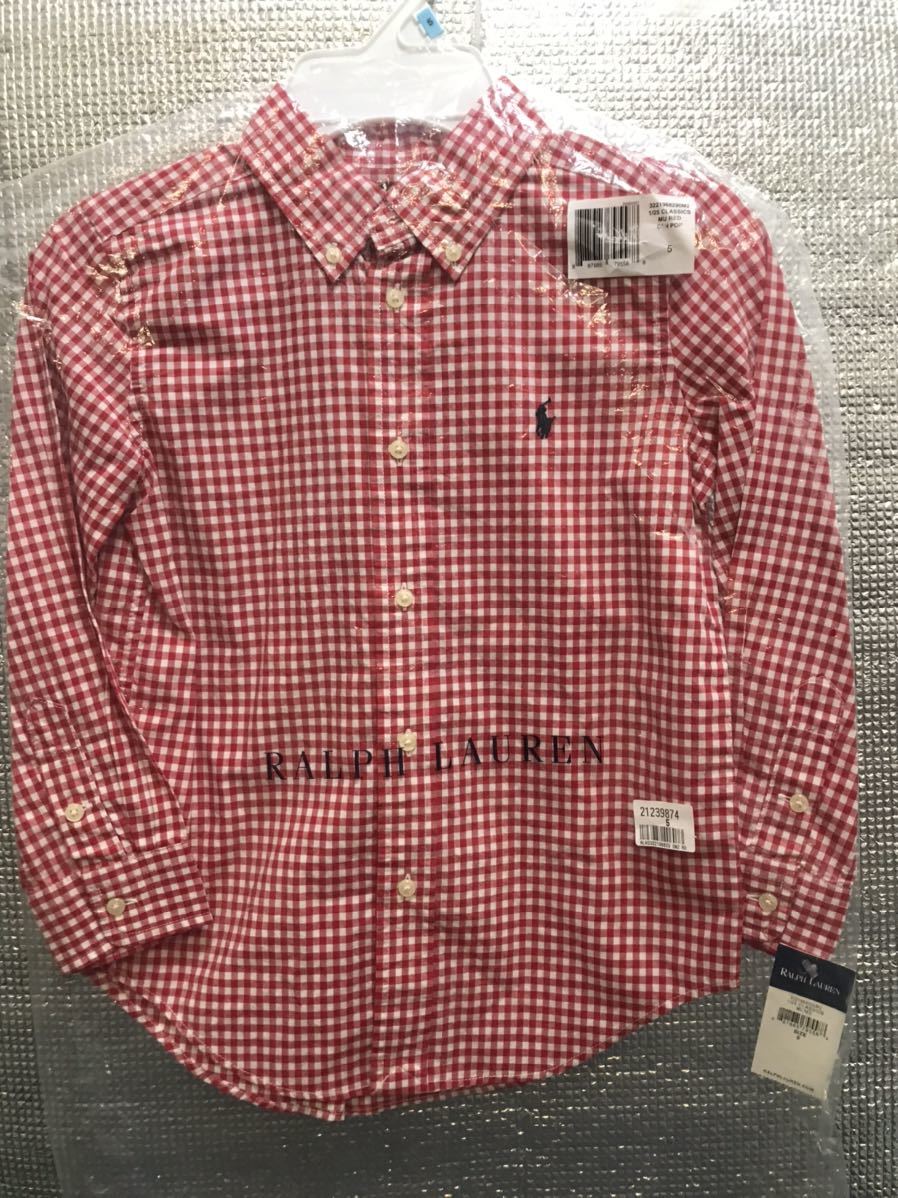 > ★Ralph Lauren ★新品★ラルフローレン キッズ 子供服 男の子 5歳用 ボタンダウンシャツ レッド チェック 長袖 ロゴ刺繍 コットン★