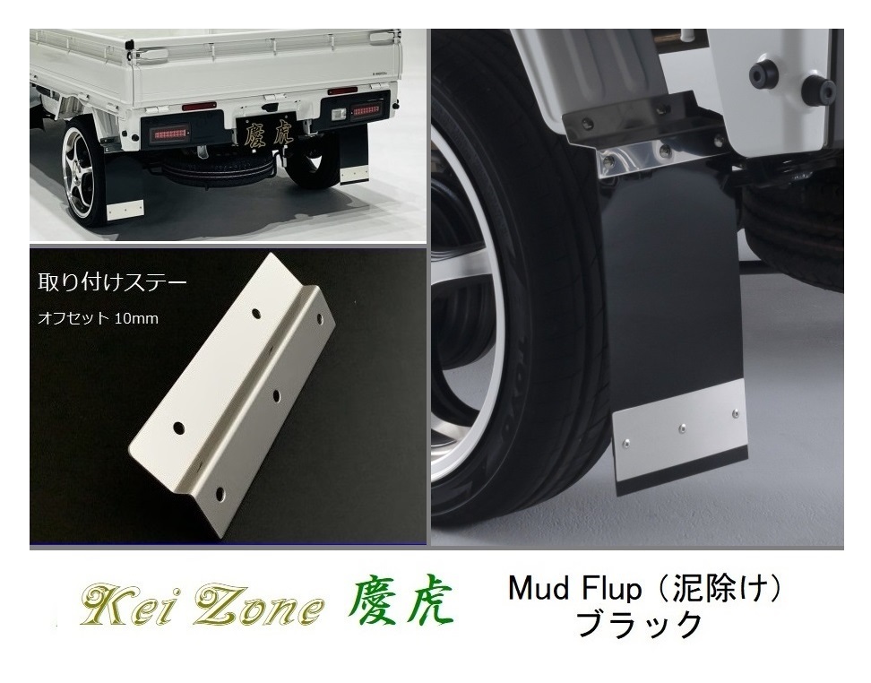> ☆Kei Zone 軽トラ ミニキャブトラック DS16T 慶虎 Mud Flap 泥除け(ブラック) 鏡面ステー付き