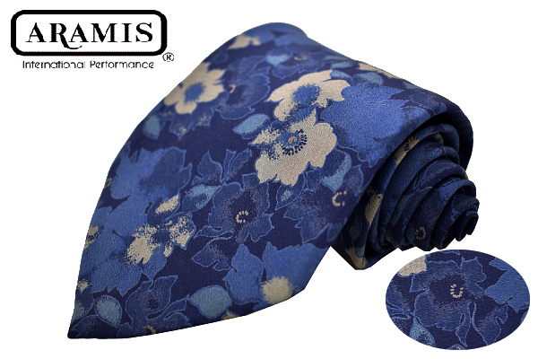 - N-2860★送料無料★美品★ARAMIS アラミス★日本製 正規品 ネイビー紺系 レトロなパターン 花柄 絹 シルクネクタイ