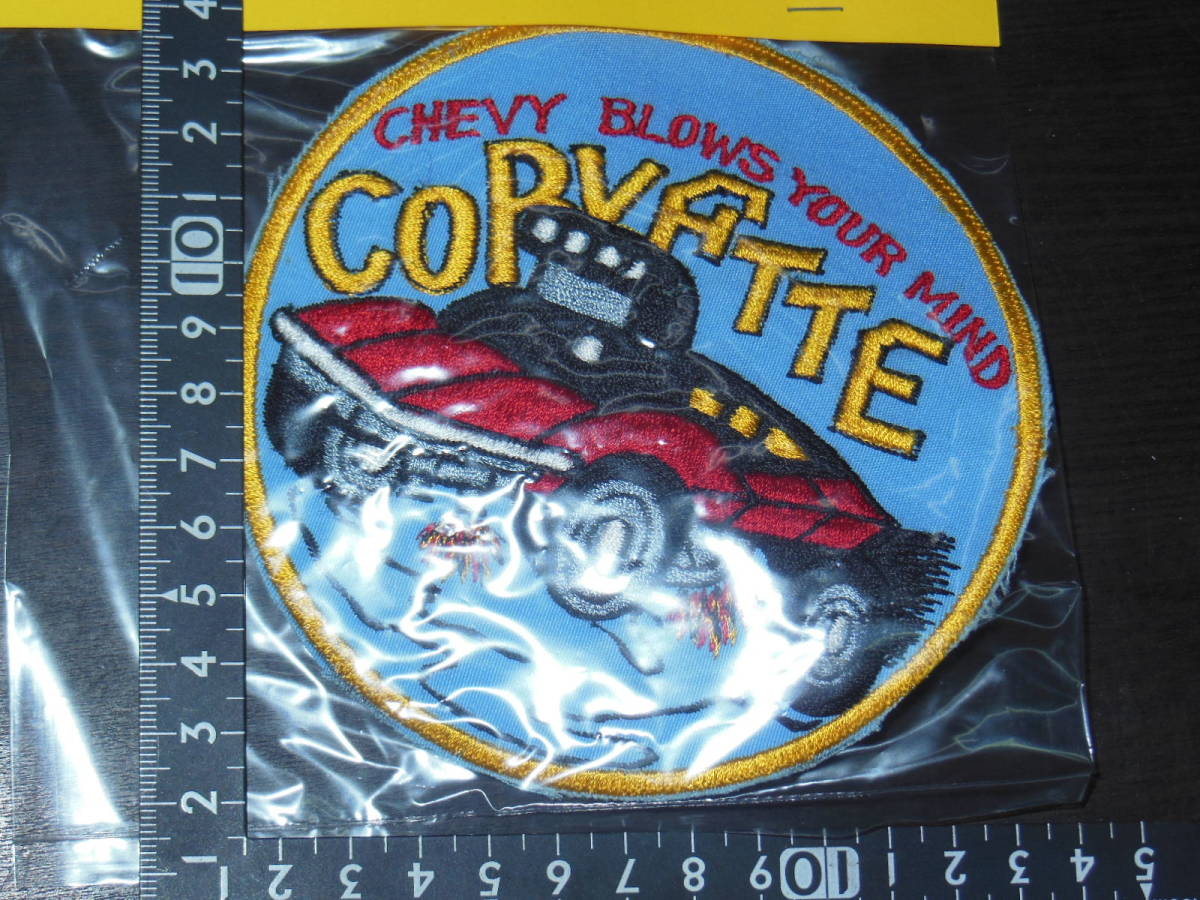 > 刺繍ワッペン CORVETTE コルベット CHEVY シェビー BLOWS YOUR MIND