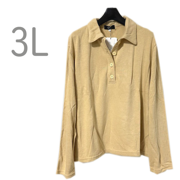 - ●新品/ポロニット/ベージュ系/3L/しなやか/制電/イージーケア/レディース●f9994