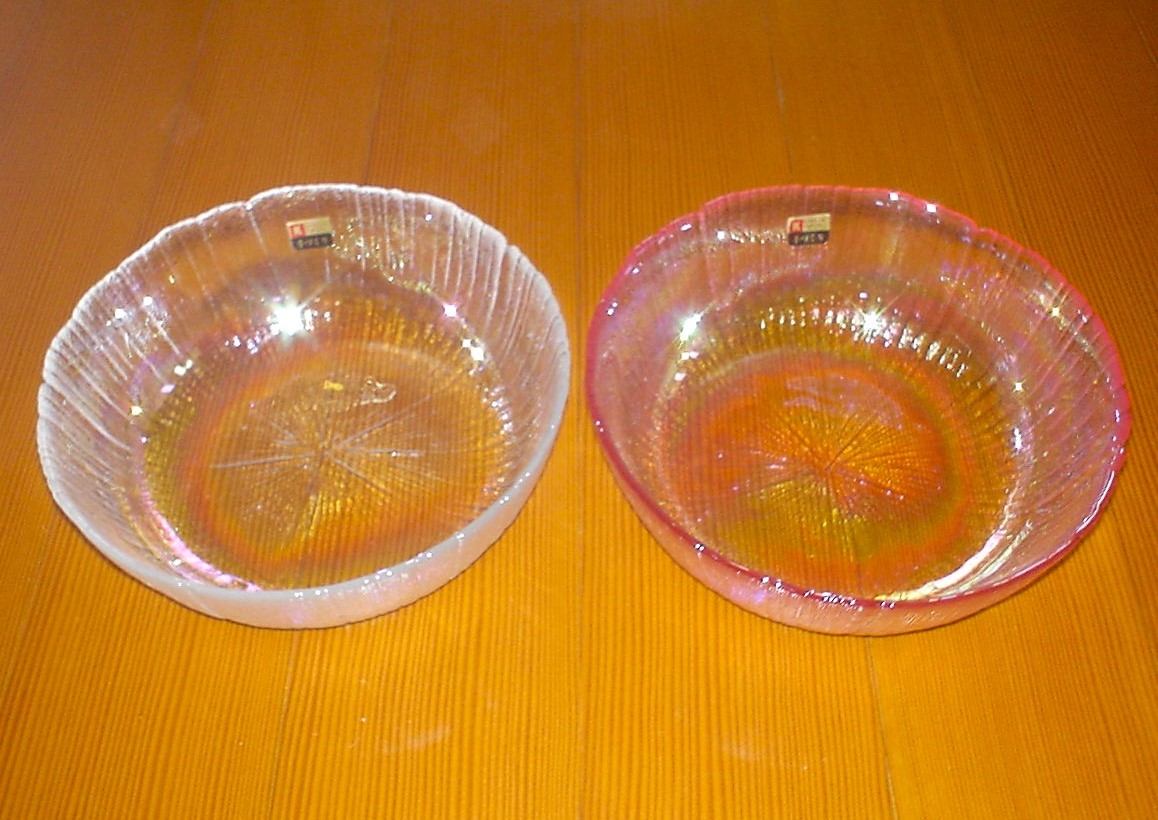 - 新品 クラタ・クラフト グラス 大皿 2色 無色&ピンク 2枚セット 手作りグラス 食器 プレート