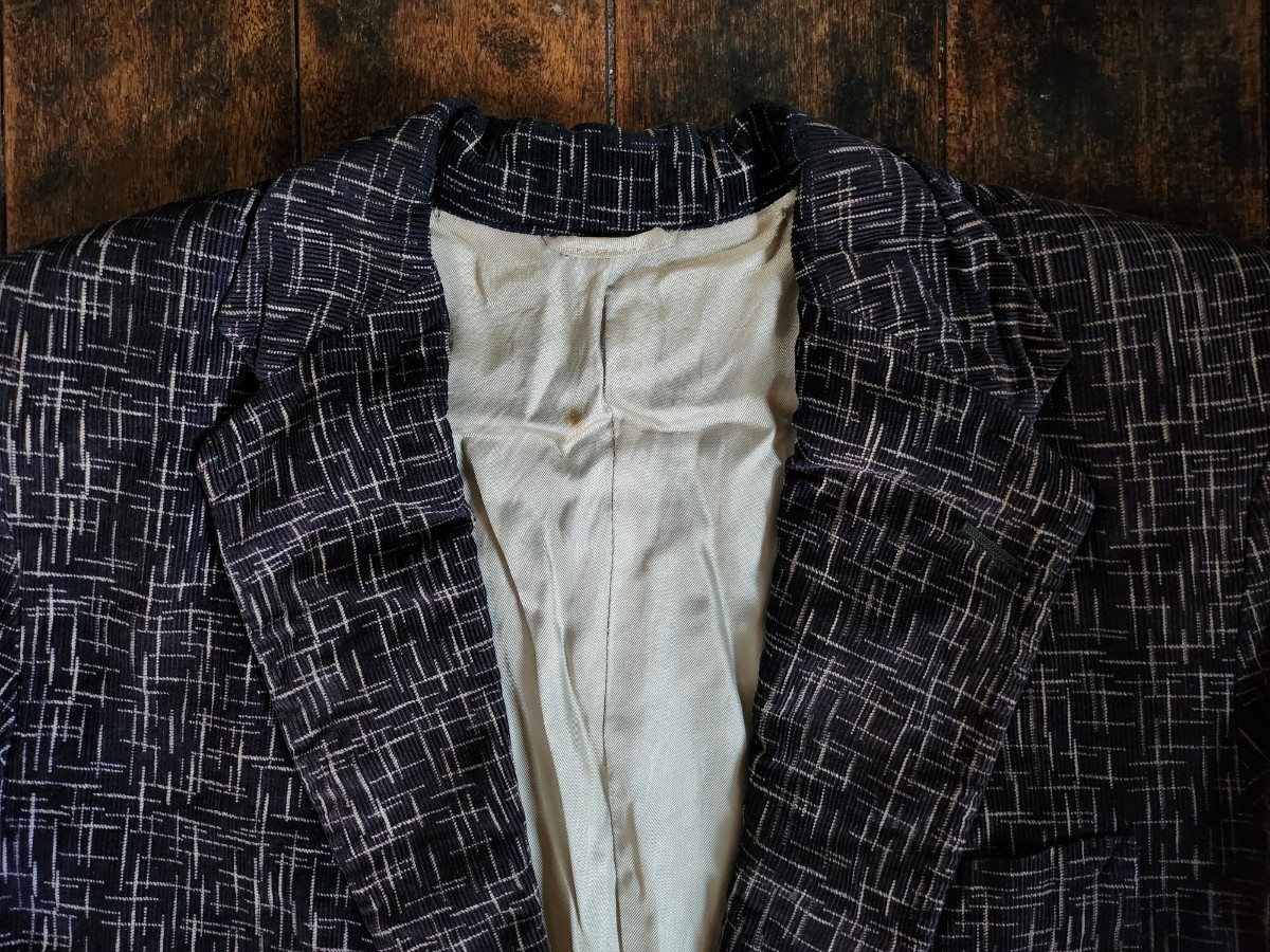 > コーズ ★ 50 s プリント コーデュロイ テーラー ラペル ジャケット 幾何学 アトミック カスリ ビンテージ ブレザー サック コート シャツ