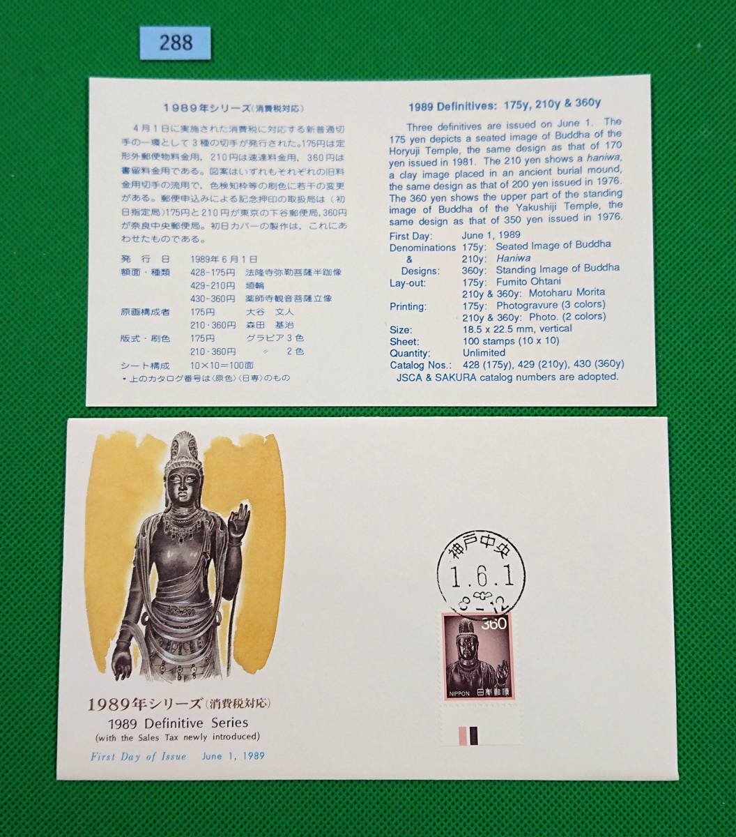 - FDC/美品/ア/普通切手/花・貝・文化財/観音菩薩立像/カラーマーク付/初日印/神戸中央ハト印/NCC版/解説書有/1989年6月1日/初日カバー №288