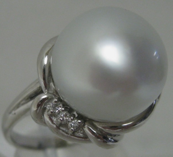 - 【東京 谷中 質屋おぢさん】Pt900プラチナリングパール14~14.5mm白蝶真珠D0.05ct#11.5
