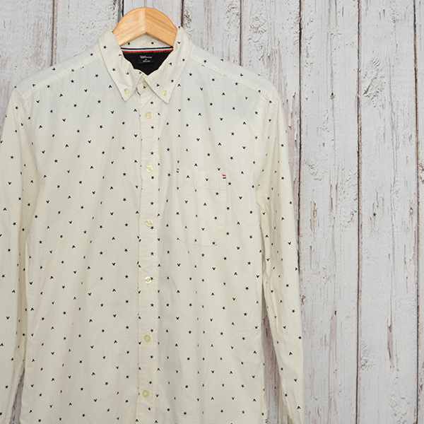 - AS5357 ディズニー DISNEY ボタンダウン 長袖シャツ M 肩43 星 ミッキー メール便可 xq