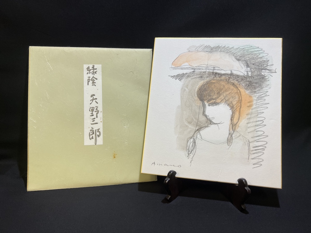 『希少!!天野三郎 肉筆サイン 水彩 デッサン画「緑陰」 真作保証 二科会 内閣総理大臣賞』