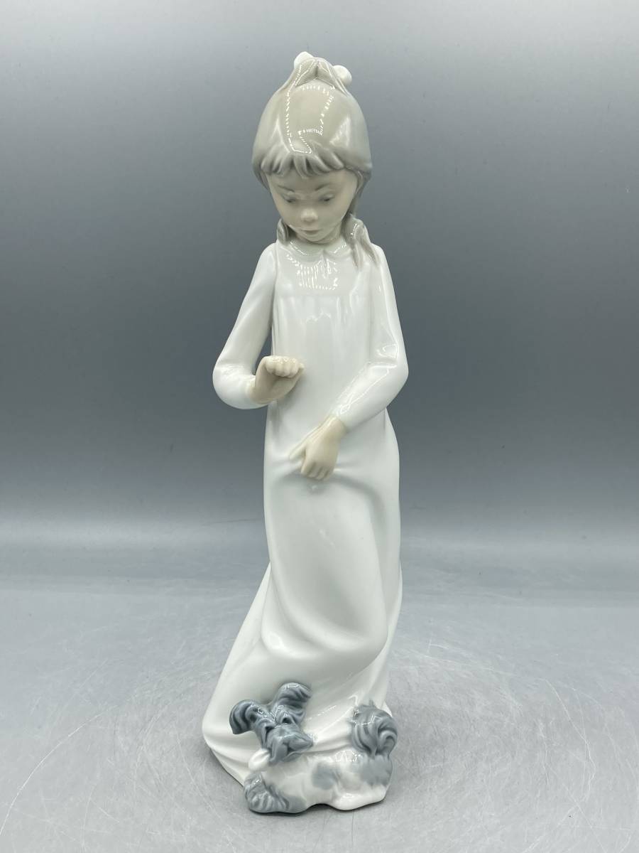 - リヤドロ ナオ 女の子 犬 フィギュリン スペイン製 陶器 置物 陶磁器 陶磁器人形
