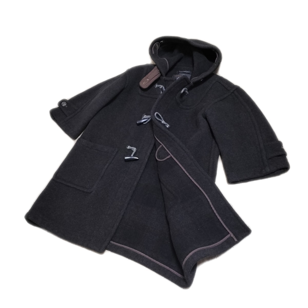 > 美品★LONDON Tradition ダッフルコート ウール メルトン ジャケット サイズ38 アウター 黒 チェック柄 ロンドントラディション 古着 USED